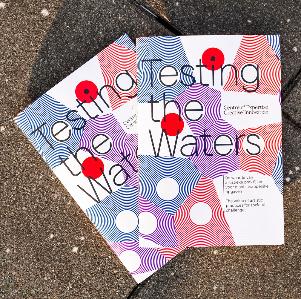 March 2025 – Within the Centre of Expertise Creative Innovation, artistic practices are deployed for social challenges, from creative working methods in education to artistic oeuvres around social themes. Design of the publication Testing the Waters: The value of artistic practices for social challenges which examines how these methods can contribute to research and innovation without losing their unique power.