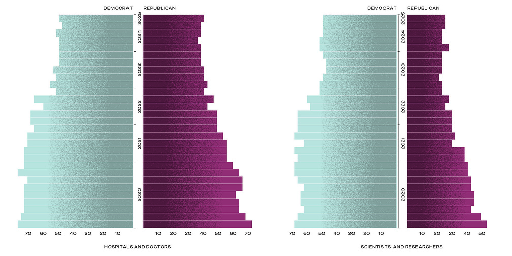 November 2025 – Infographics for the print issue of Harvard Medicine magazine on the crisis of trust in science and medicine.