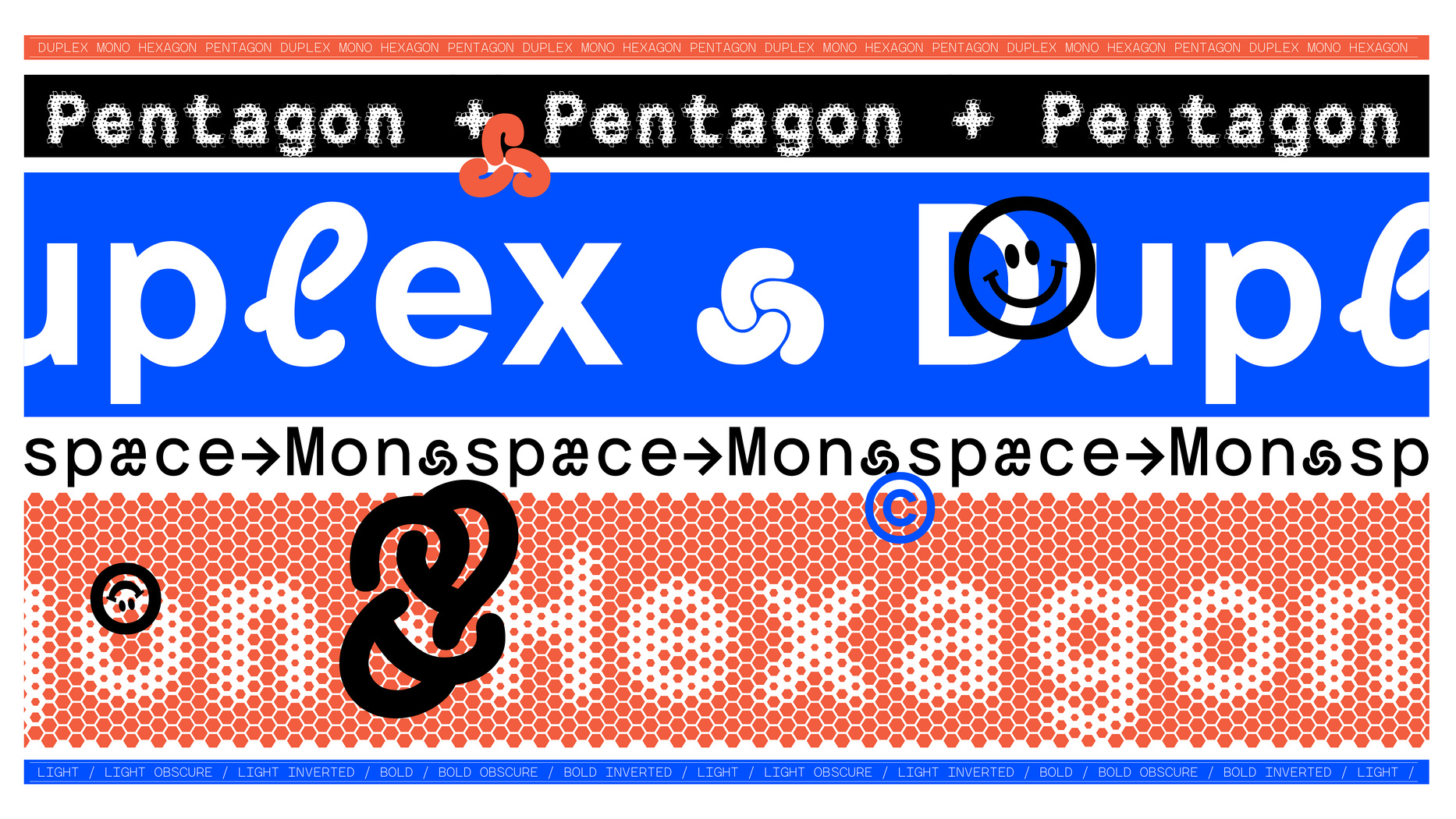 Gardner passed this on to Doris Schattschneider, an American mathematician specialised in tiling patterns, to verify this was actually a new tessellation. Schattschneider was able to validate Rice’s discovery. Over the years, and in continuous correspondence with Doris Schattschneider, Rice discovered three more types of pentagons that tile the plane. Her work was published in Mathematics Magazine by Schattschneider in 1977. In 1999 her last discovery, the type 13 tiling, was installed on the floor of the foyer of the Mathematical Association of America. Available at showmefonts. In collaboration with Bernd Volmer (design & production) .