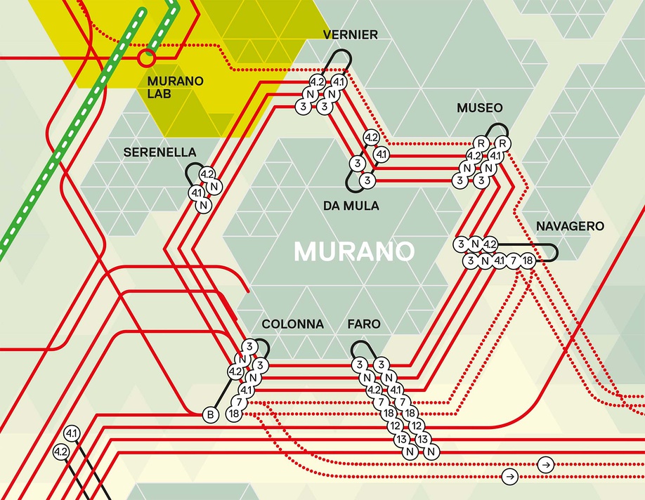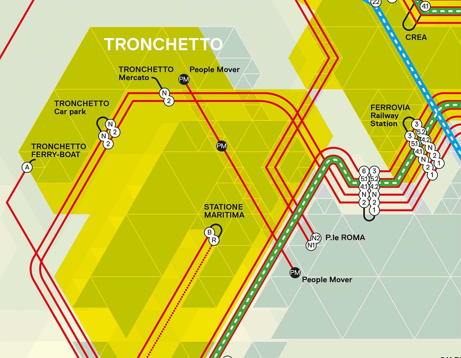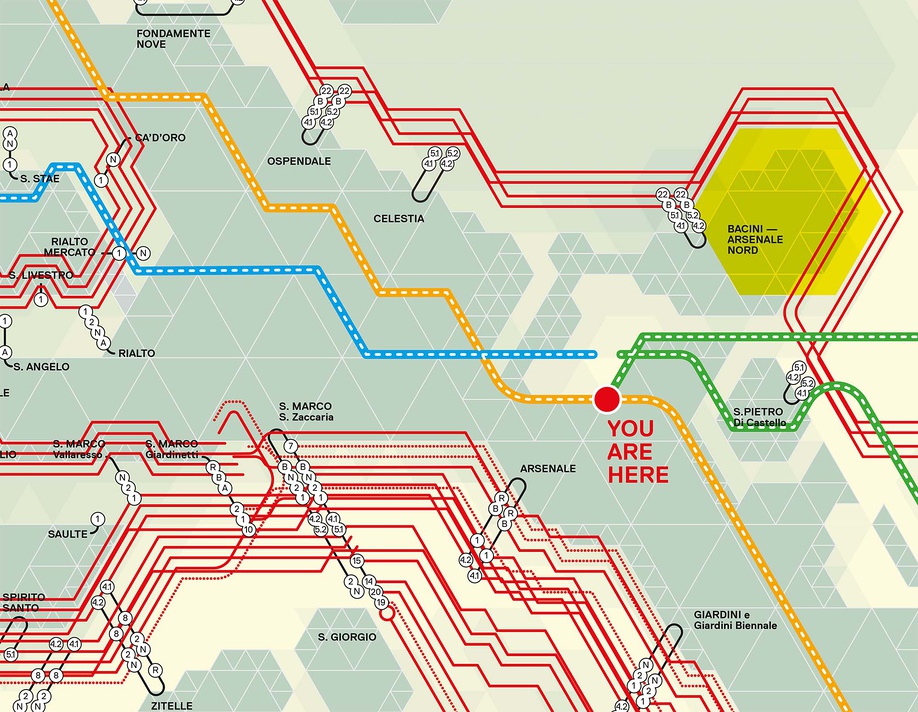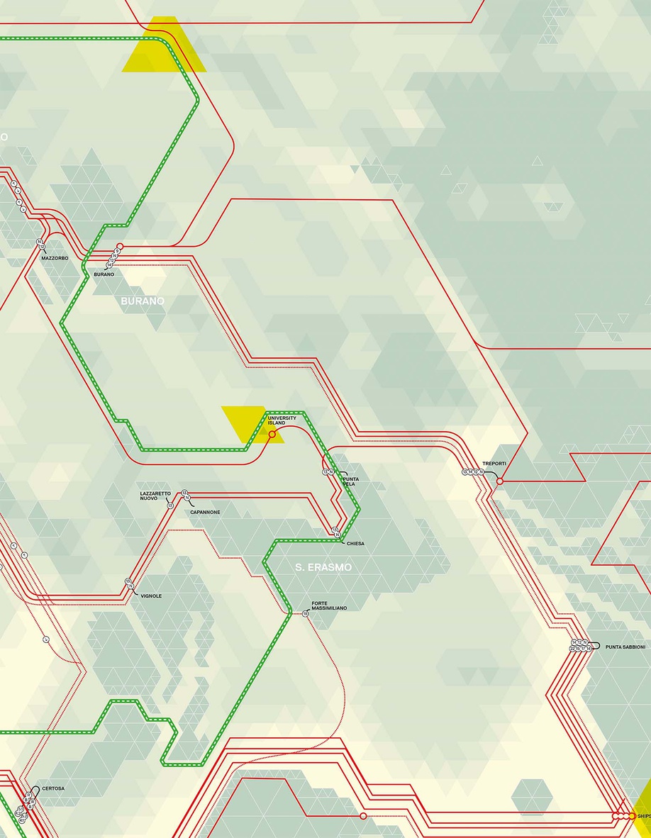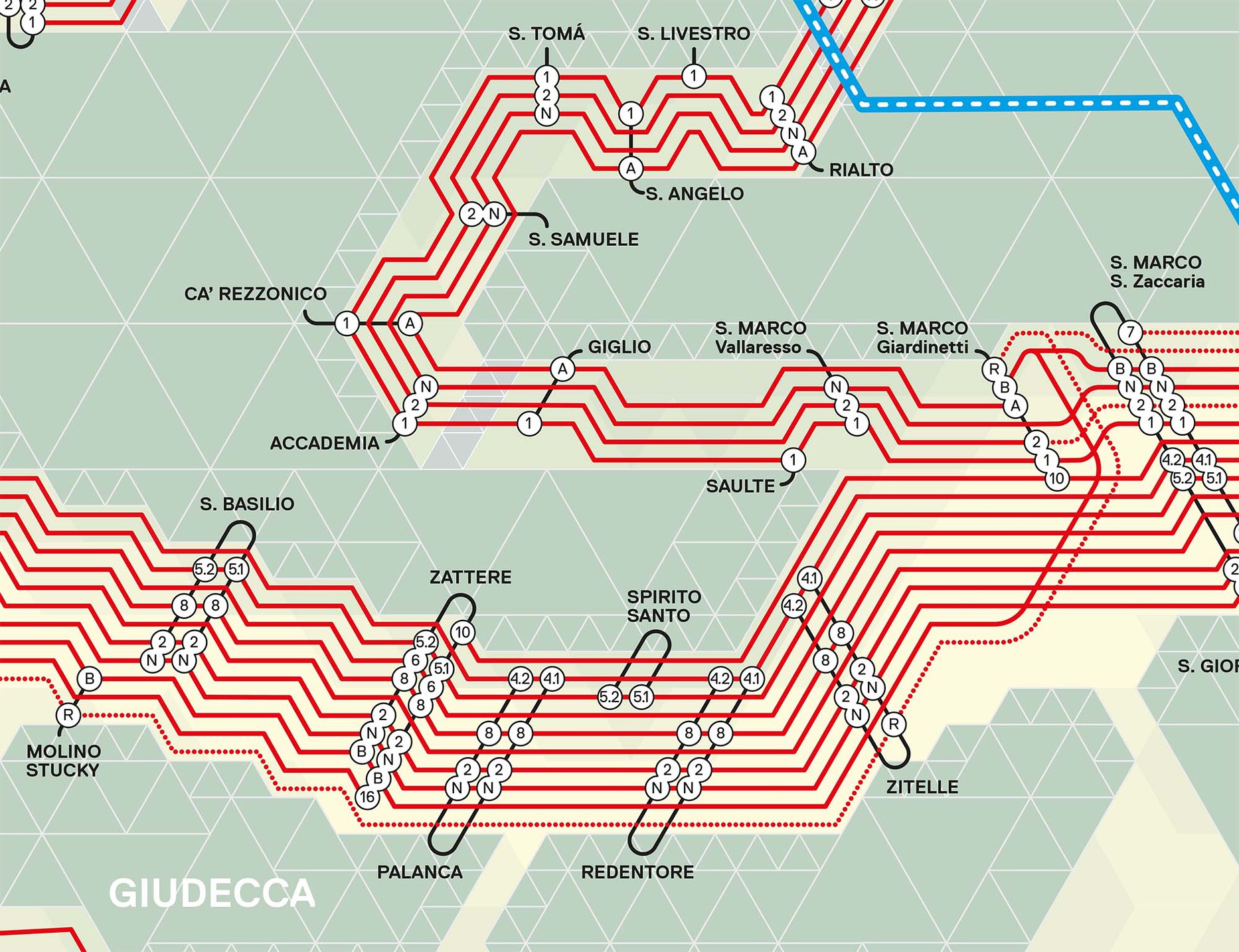 June 2021 – Cartography for "Servizio Modificato" (Modified Service), a collaboration with Kathryn Moll and Nicholas de Monchaux of modem (USA), Sandro Bisá of Bisá Associati (IT) and William Sherman of the University of Virginia Venice Program (USA/IT).