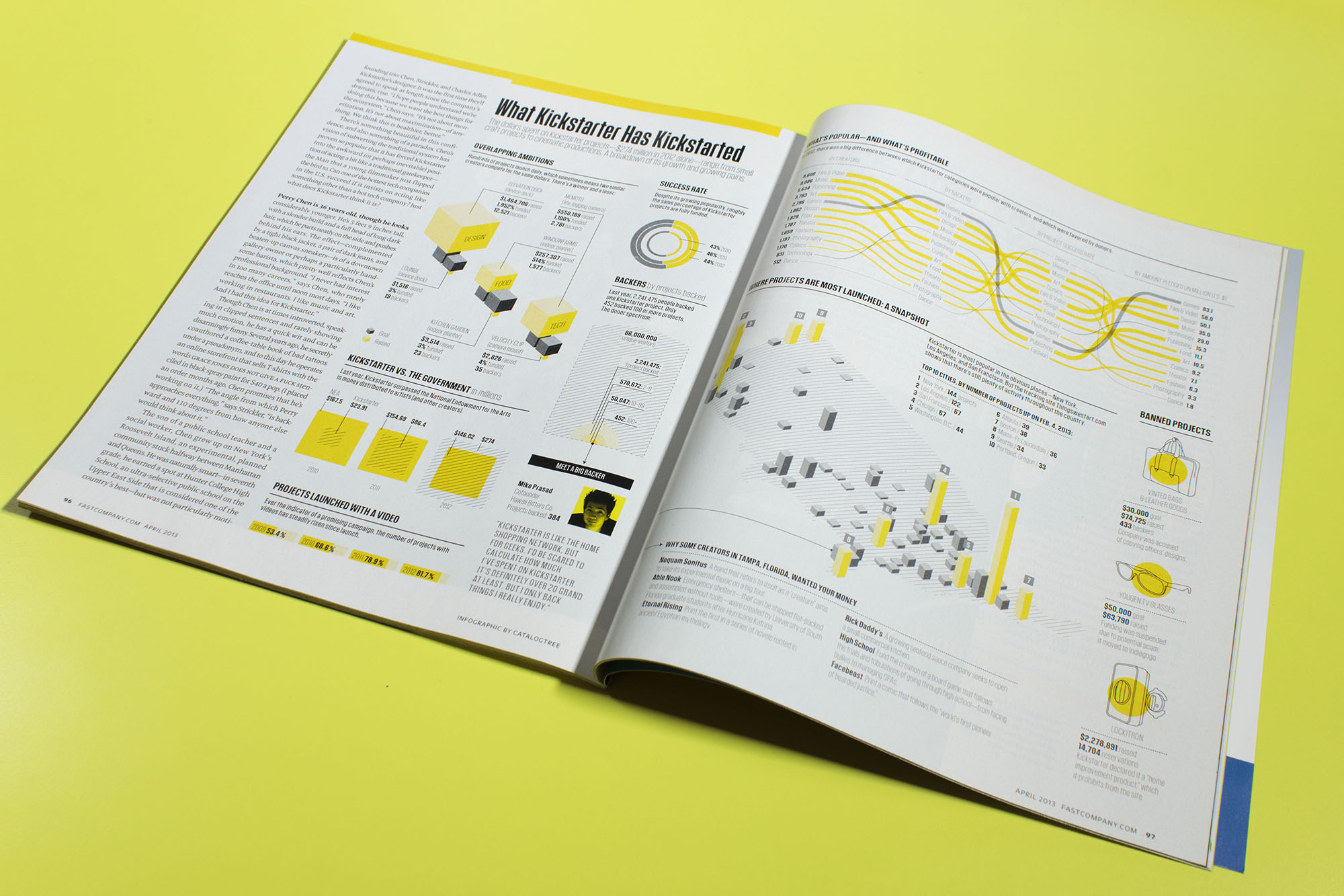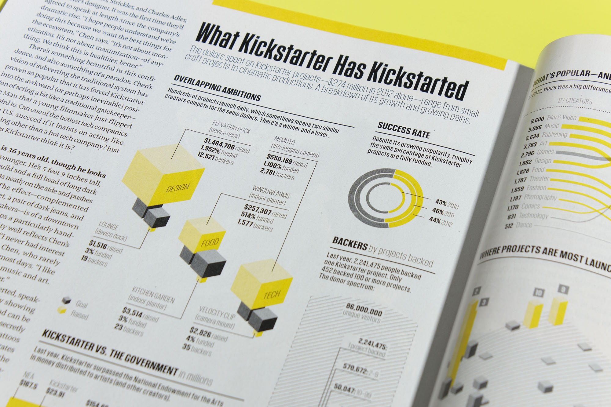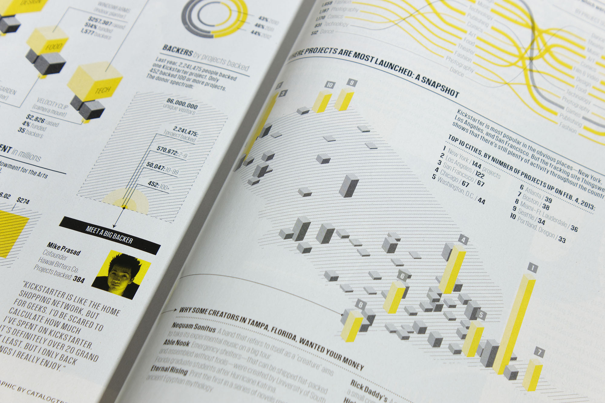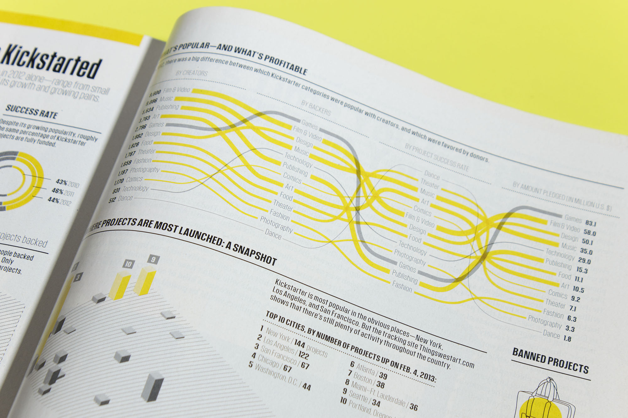 March 2013 – Charts and map about the crowdfunding platform 'Kickstarter' for Fast Company Magazine, Harlan (US).