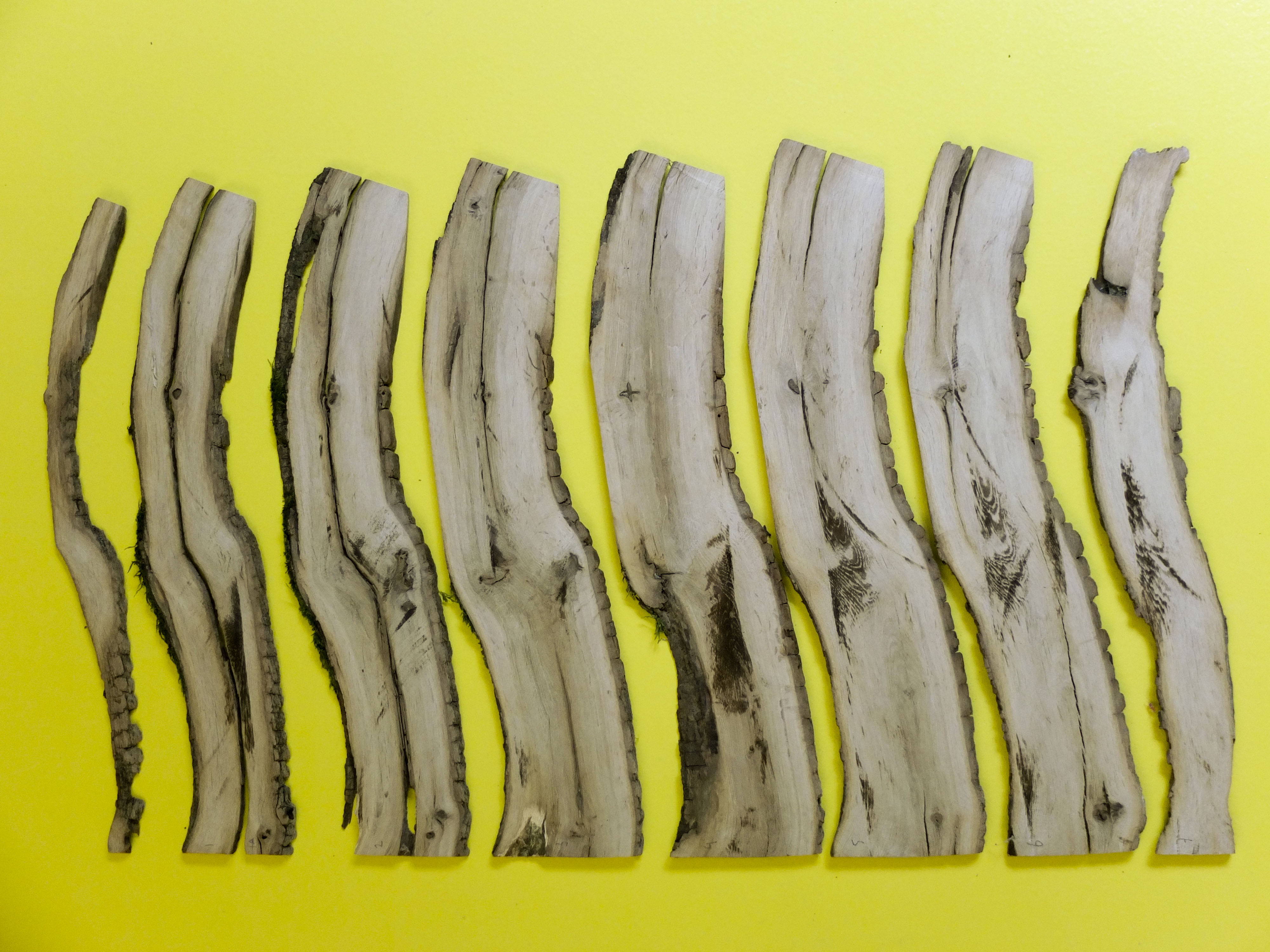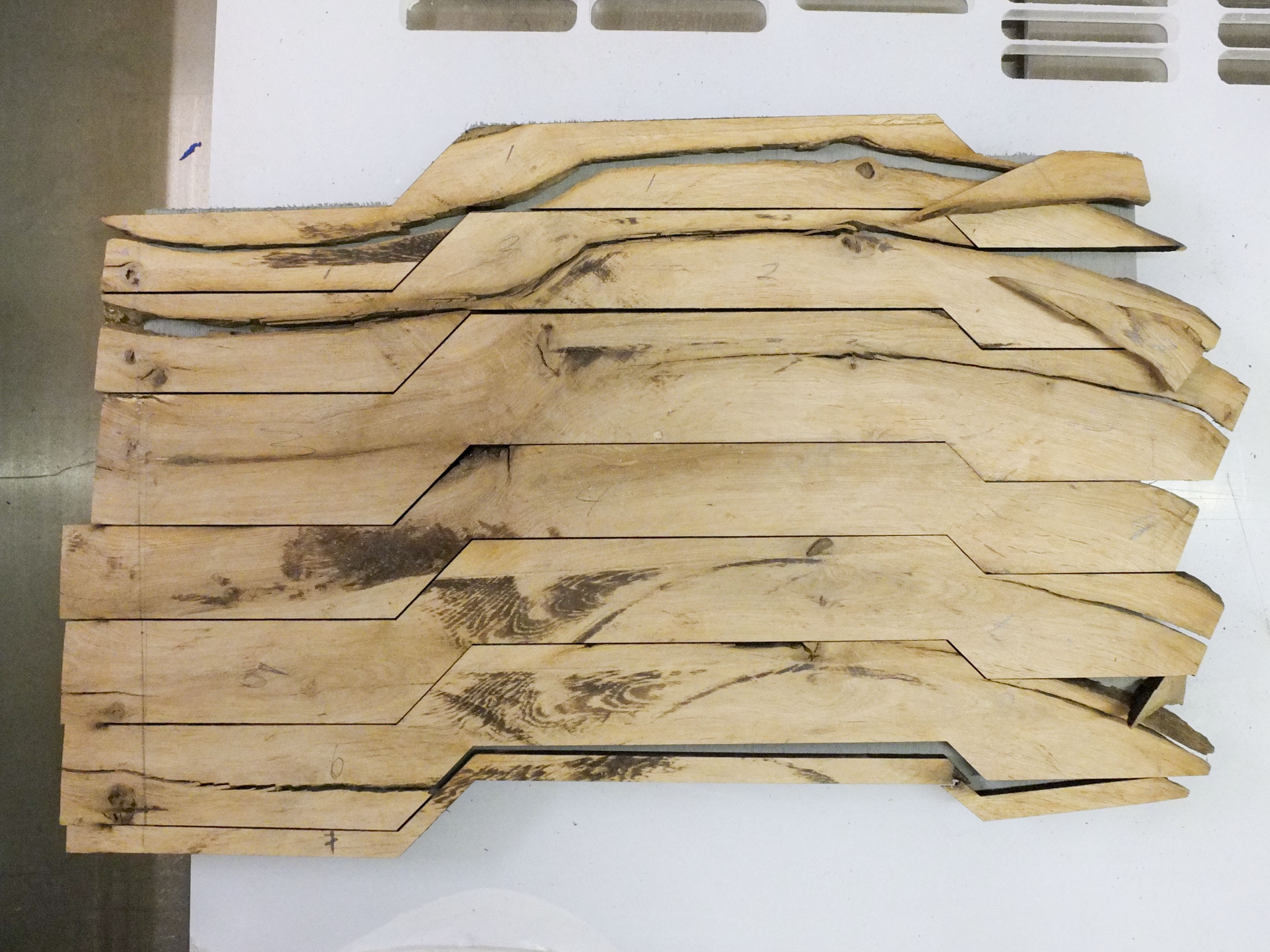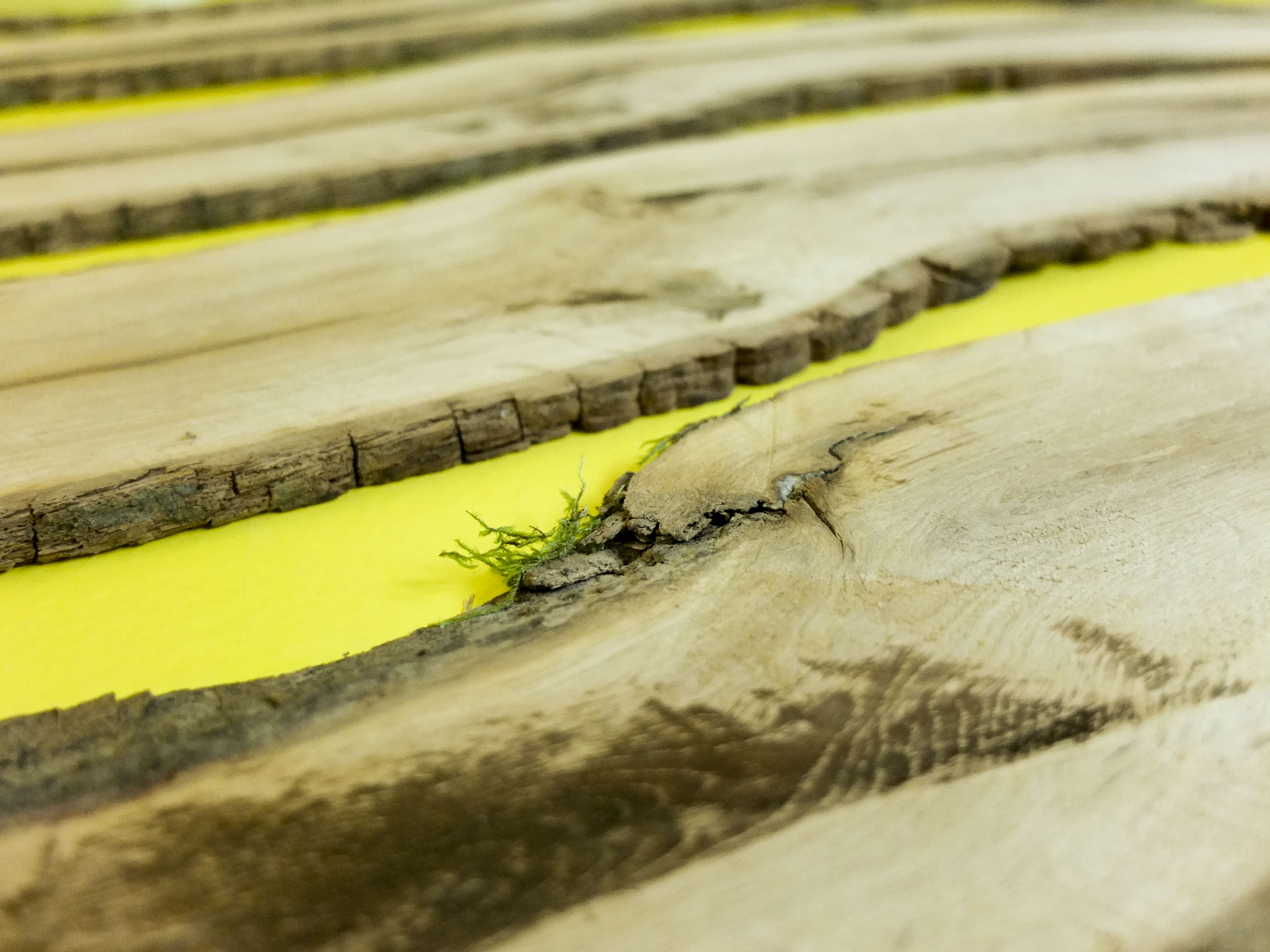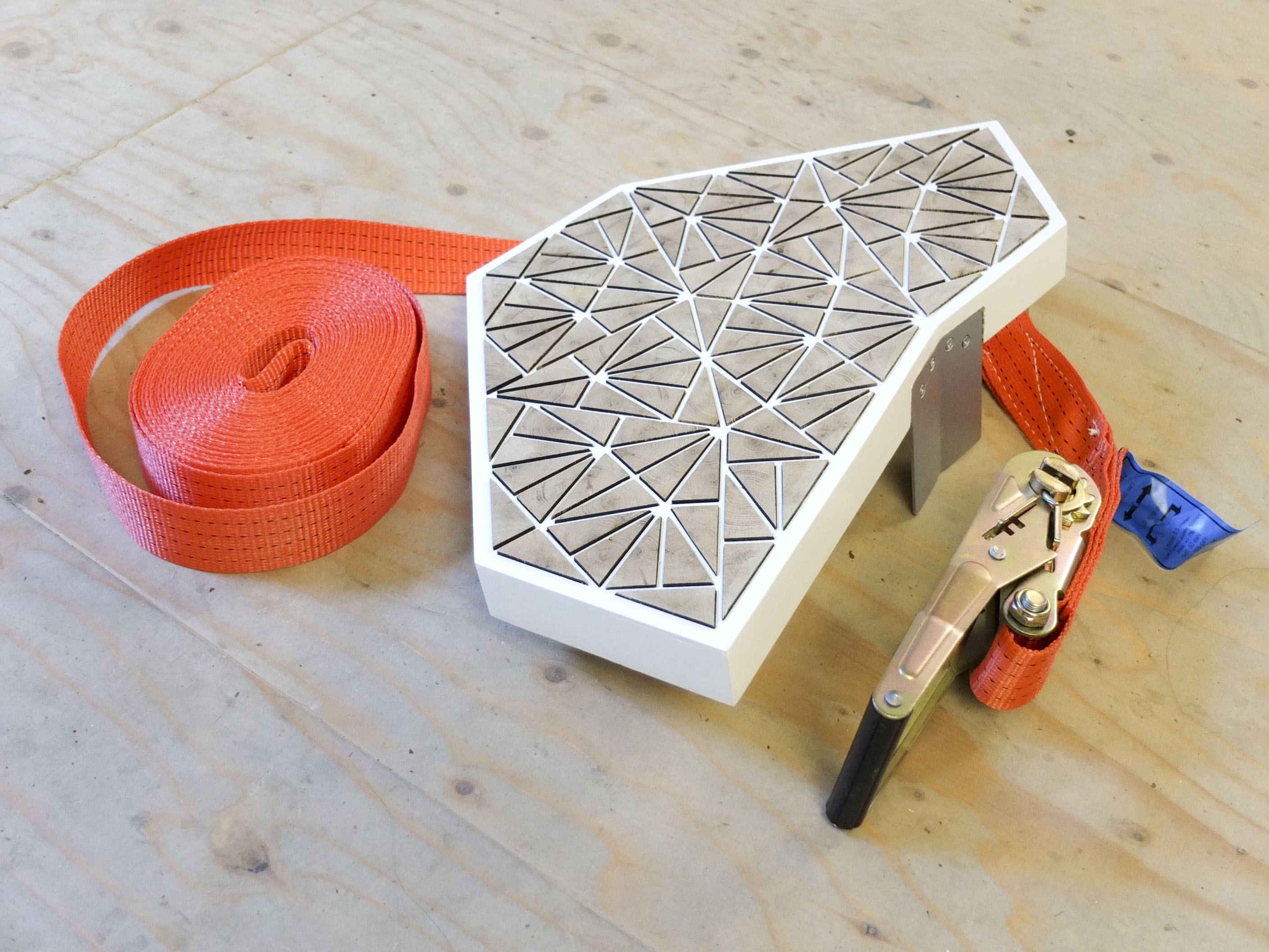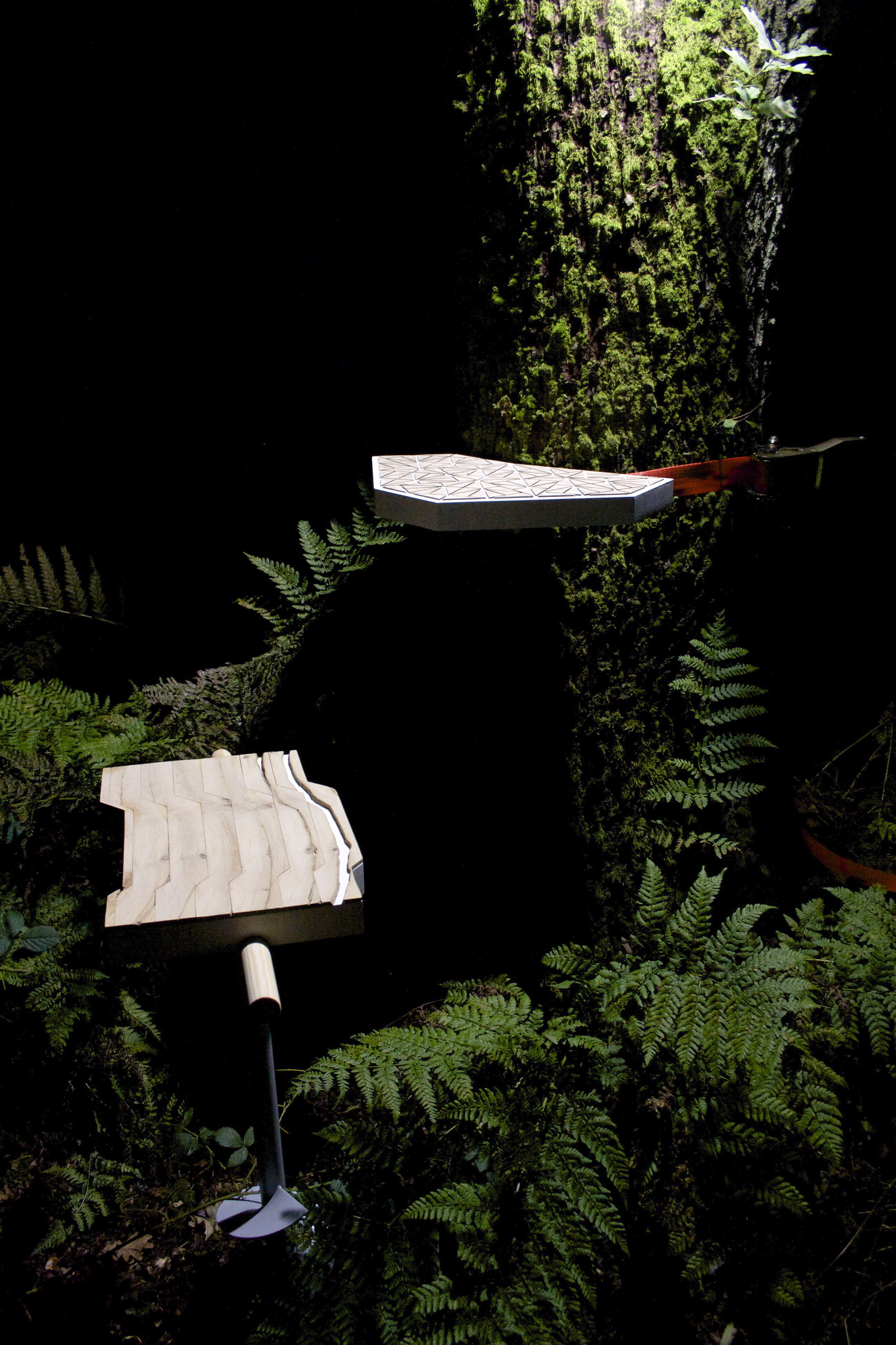October 2012 – Chair and table covered with self-made oak veneer. The chair can be mounted with a ground drill, the table can be attached to a tree with a clamping belt. In collaboration with Bram Otten (Laser cutting, CNC milling, assembly) .