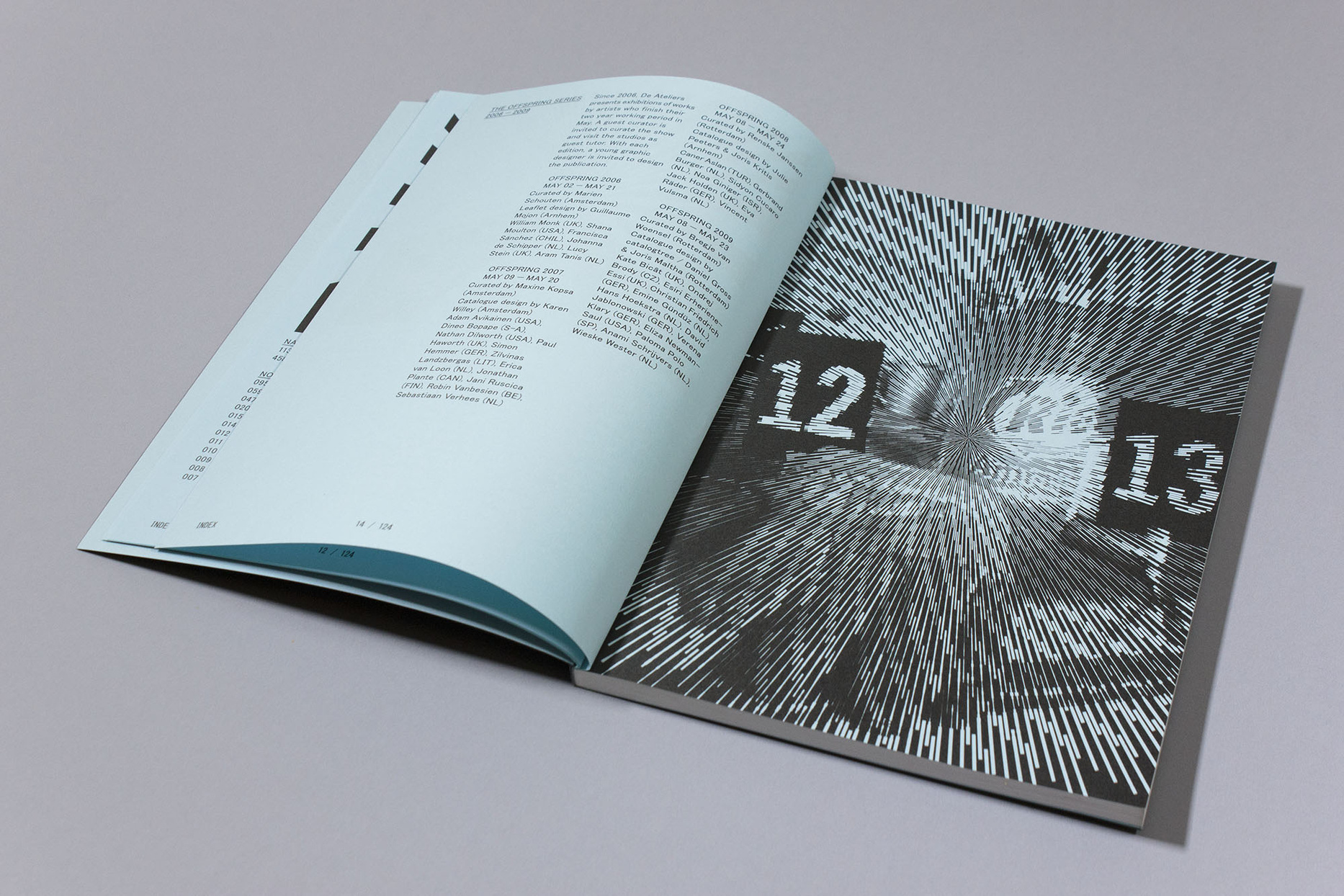 May 2009 – Catalogue design for the offspring exhibition of 2009 at de ateliers, Amsterdam (NL). The catalogue is both a documentation of the work-process of participating artists and a showcase for exhibited works. Studio photography was done by Forensic Photographers using a regular crime-scene protocol. In collaboration with Eva, Yaseer, Kathy, Shira, Florijan, Linda (CSI photography) .