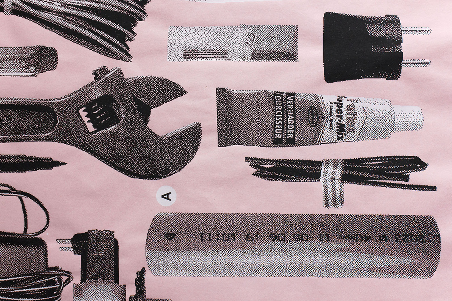 January 2009 – Experimental set-up with selfmade pneumatic pushpin firing mechanism to show the fact that everything falls with an equal speed. Commissioned by TASK Newsletter #02. The silkscreen poster shows some parts of the gun and their assembly.