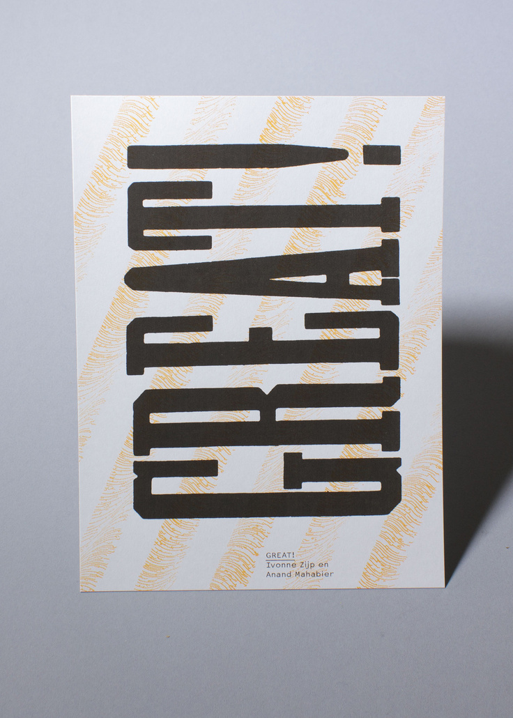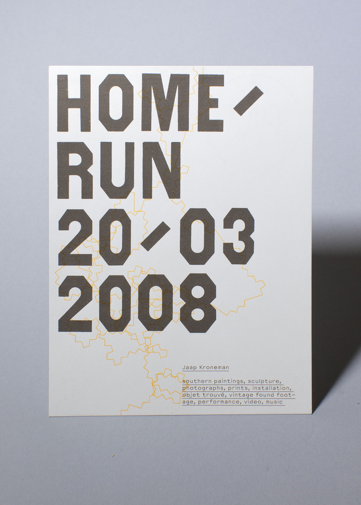 December 2008 – Series of invitations for gallery Plaatsmaken in Arnhem (NL). Letters are based on 'American Wood Type: 1828–1900' by Rob Roy Kelly.