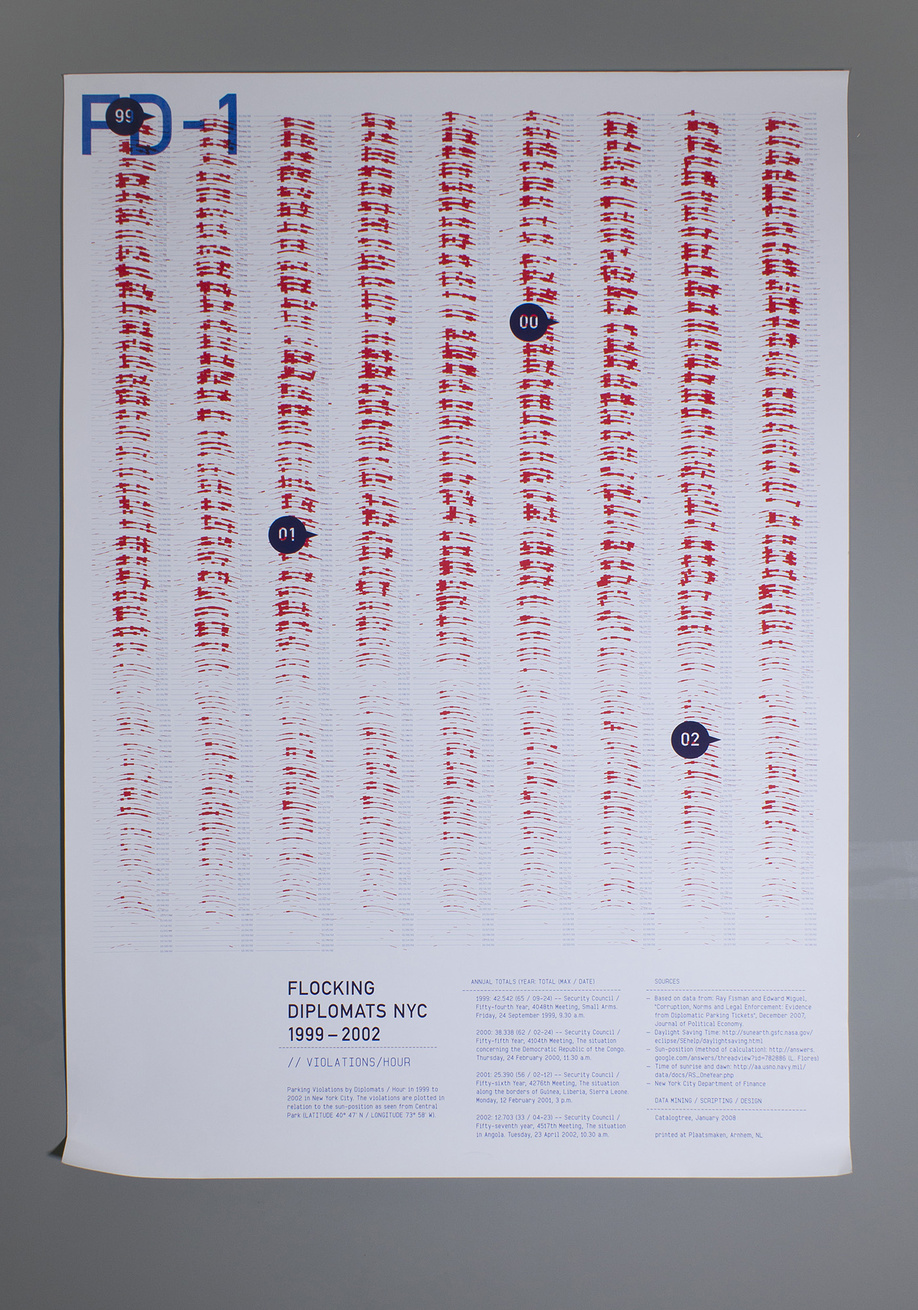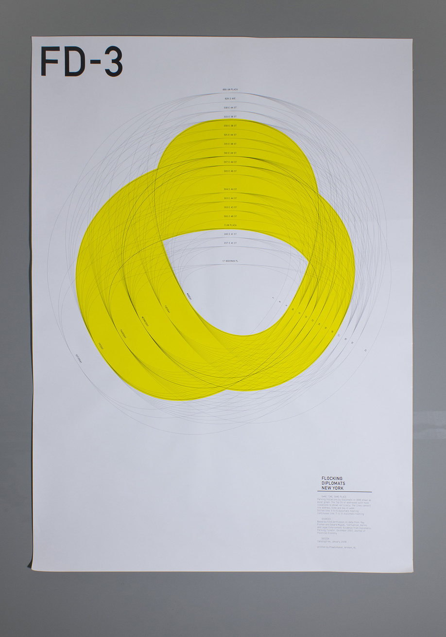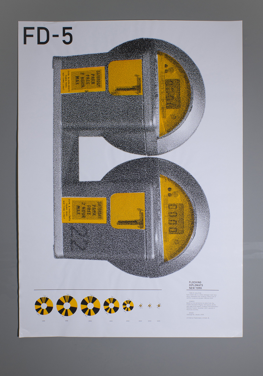 January 2008 – Poster series on Parking Violations by Diplomats in New York City, 1997–2005. Thanks to Ray Fisman and Edward Miguel for kindly permitting us to use their data.