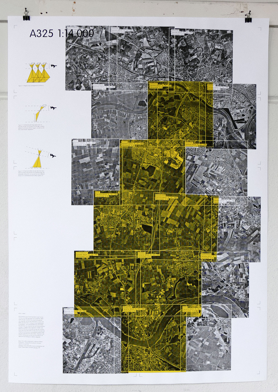 A325-1:14.000: The poster shows aerial photographs of the A325 (scale 1:14.000). Objects of military importance have been coloured grey by order of the Ministry of Defence.