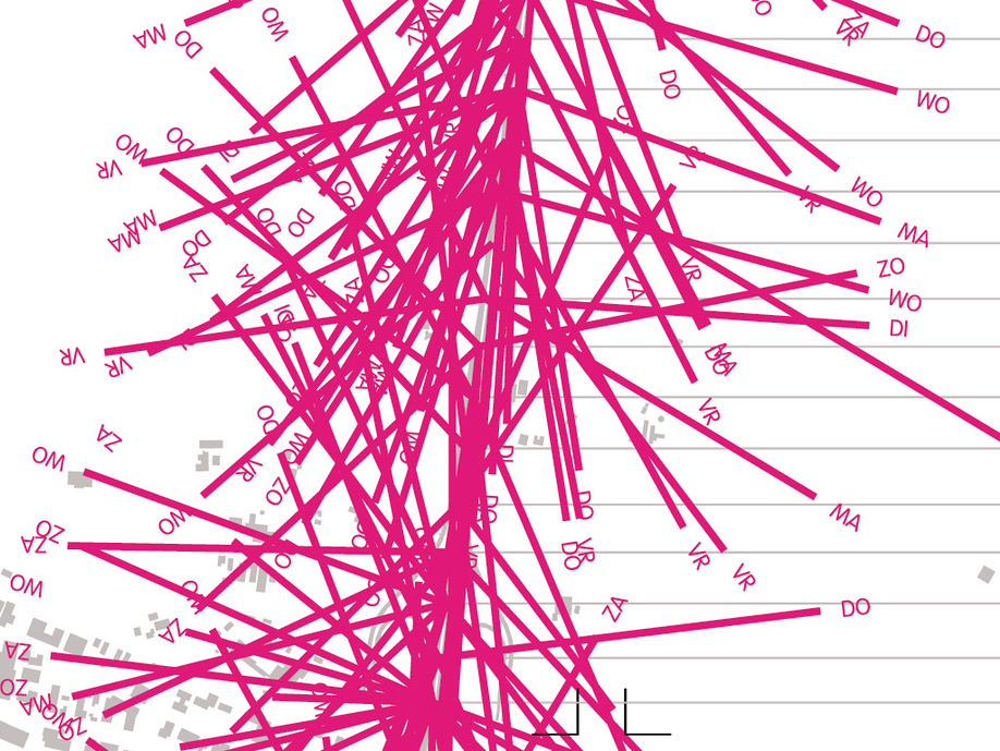 A325-slot car: The diagram is based on the direction-preference of traffic on a complex crossroads per hour of the day.